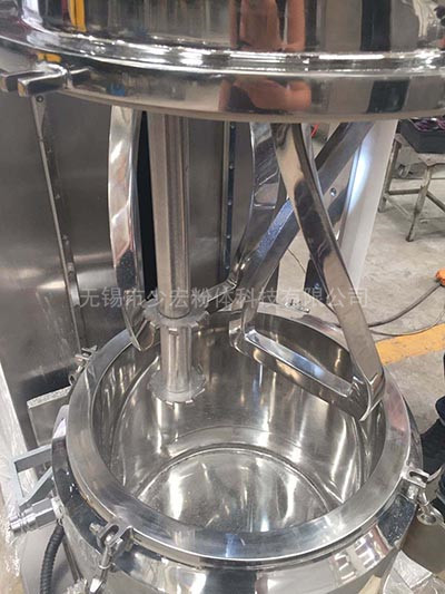 行星分散混合機有高速、低速、活動刮板作攪拌、剪切、刮壁、溶解用。低速運轉的攪拌錨使物料在密 閉容器內上下翻動、剪切和混合,高速運轉的齒形分散盤與混合的物料產生強烈的碰擊和剪切,隨著攪拌錨的旋轉,行星架上的活動刮刀隨著旋轉,把釜體上的物料完全刮掉,使聚集物完全、徹底地達到混合、分散、溶解的要求。在其高低速的不同作用下,使物料能夠達到均勻的混合和分散。