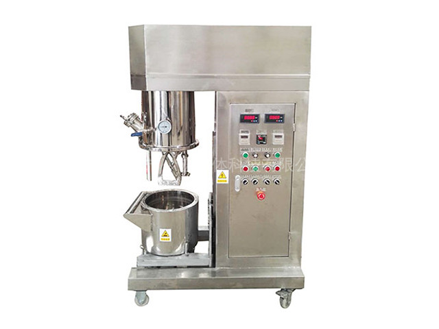 運轉部件有主鍋攪拌系統、主鍋均質系統,主鍋升降系統,副鍋攪拌系統,真空泵系統。控制通過面板上的按鈕進行,可控制照明燈的照明與熄滅,控制主鍋攪拌的運轉,控制主鍋分散的運轉,控制真空泵的運轉以及主副鍋的加熱。